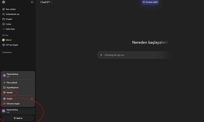 1. ChatGPT Hesabınıza Giriş Yapın